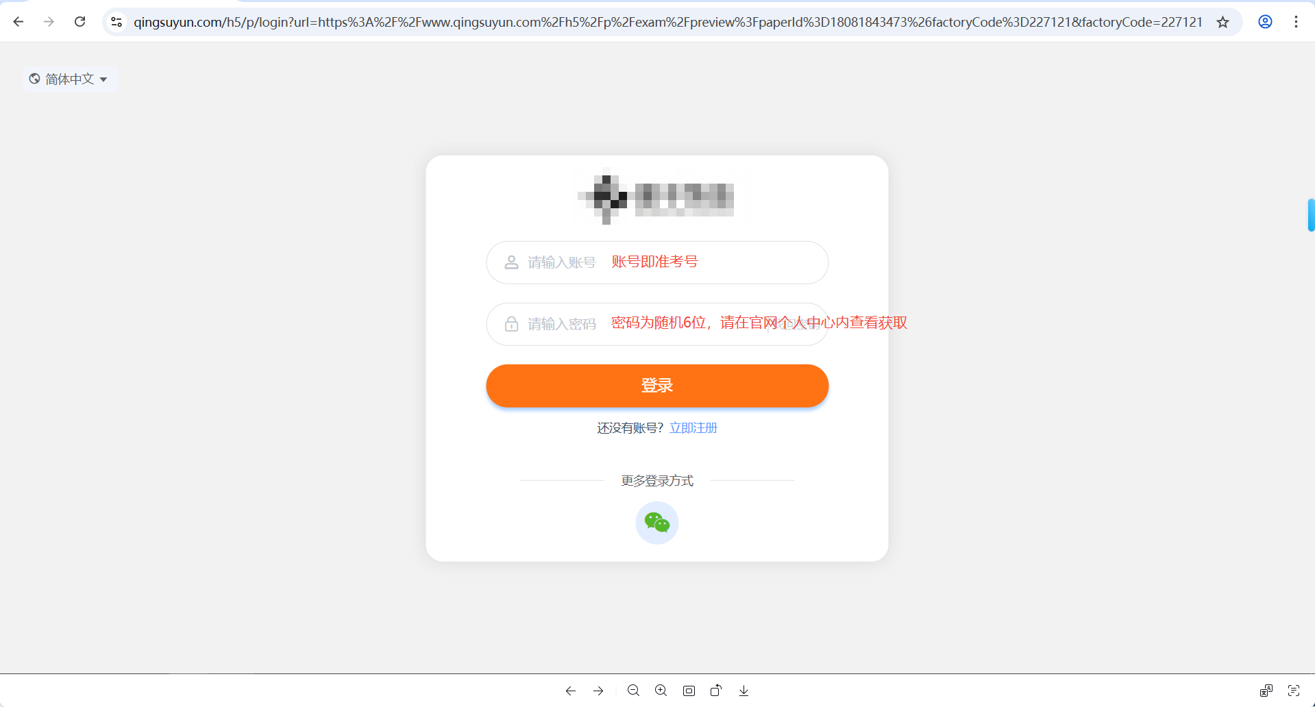 1、考生点击进入官网发布的模拟考试链接/正式考试链接,输入账号及密码登录; 如下图1